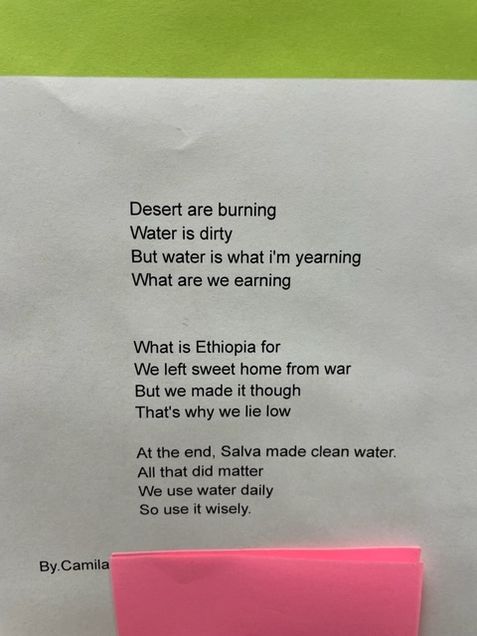 Our students are creating amazing connections as we work through human impact on the environment and read The Long Walk to Water. Our students created a reflection wall after completing the book. I have included some samples of their amazing work below.